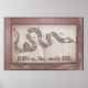 To unite the colonies, Benjamin Franklin famously created the "JOIN or DIE" slogan beneath a dismembered snake. Unfortunately, his teenage granddaughter placed the order at the printers, leaving us with these rare pieces of Americana that say, 'Join or, Like, Totally Die.' This poster can be custom sized up to 5-feet wide, making it ideal for classrooms or really old people.