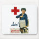This vintage World War One poster features a smiling paper delivery boy, with his dog, pointing at his red cross lapel pin. It reads, "Join! The American Red Cross". Celebrate WW1 and Red Cross History with this digitally restored vintage poster from The War Is Hell Store.