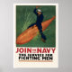 Vintage World War I Poster "Join The Navy ~ The Service For Fighting Men" by Richard Fayerweather Babcock, 1917, wish a humorous illustration of a sailor riding a torpedo.
