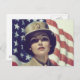 Patriotic recruitment poster image for Women Army Corp during WWII. Woman in uniform standing in front of the United States flag.