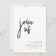 If you love classic, this simple and welcoming style invitation is right for you. The invitation features an elegant design, with a white background with delicate party details beautifully scripted in a black text exuding an air of sophistication. Welcome guests to your next event in style. Background color and text is editable.