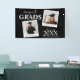 Modern double graduation party banner which features 2 photos of the graduate's. The banner has template text that reads 'CONGRATS GRADS, THEIR NAMES, YEAR OF GRADUATION, and THEIR SCHOOL OR COLLEGE NAME'. All font styles and colors can be changed by clicking on the customize further link after personalizing.