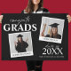 Modern double graduation party welcome poster, which features 2 photos of the graduate's. The poster has template text that reads 'CONGRATS GRADS, THEIR NAMES, YEAR OF GRADUATION, and THEIR SCHOOL OR COLLEGE NAME'.