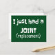 I just had a joint replacement is prefect for your friend or relative who just had surgery to replace a joint and has or needs a sense of humor. If they can laugh or are in need of a good laugh this is the gift for them.