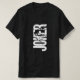 A bold black-and-white graphic design featuring a grinning comic-style villain behind fragmented, distressed text for a dark and edgy look.