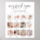 This first birthday milestone board features a fun handwritten font and modern minimalist design with twelve photo slots to truly honor your little one's growth. This year one highlight poster is perfect for your boy or girl birthday party. All colors are editable! Click the blue 'edit using design tool' button in the personalization section to use the full editor.