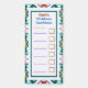 Jolly Christmas Countdown Green Checklist Magnetic Notepad Planner. Edit the title to whatever you choose. You can change the colors of the title and date space in the Zazzle editor. Blank for you to add your text or write in your tasks that need to be done before the 25th December. Keep track of your plans by checking off the tick boxes. With space to write the date. Great as a reminder or planner for forgetful people or the family member who likes to organize or host the annual Christmas get together. Buy for yourself, or as a gift for the party organizer in your family or friend group. It has a bold, cheerful and colorful green, purple and winter brown geometric pattern border. The colors of the text are drawn from the border.