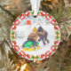 Jolly and Festive Red and Green Christmas Photo Picture Frame Round Christmas Tree Decoration. A colorful and bright circular bauble ornament for your winter and red and green themed tree and decorations. The frame design is a merry geometrical abstraction pattern take on traditional color block festive designs. In winter colors of bright red and green, with hints of pink and orange. Personalize it by replacing the two photos, on the front and back, with your own for an early gift for family and friends to celebrate Christmas. Cherish your Yuletide memories of a Winter Wonderland. A great gift for best friends and brothers and sisters, or couples. A budget friendly keepsake for celebrations or first Christmases.