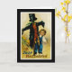 Vintage Halloween greeting card illustration showing a child playing with a scarecrow