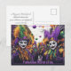 Dive into the vibrant world of Mardi Gras with this eye-popping postcard, adorned in the signature hues of purple, gold, and green. Feathered masks and sparkling beads dazzle against a festive confetti backdrop, capturing the spirit of celebration. Fully customizable text areas on the front and back offer the perfect canvas to add your unique touch, making it ideal for spreading the carnival cheer.