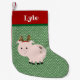 Pets deserve a gift from Santa too! Celebrate the holidays with this adorable pig design on a Christmas stocking. The background color as well as the background pattern can be changed if desired. The text color and style can also be changed. Original design by Night Owl's Menagerie, 2017.