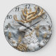 A beautifully crafted clock showcases a regal stag adorned with intricate golden antlers.