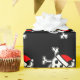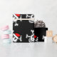 Jolly Roger Christmas wrapping paper | Santa skull design. Funny Xmas gift wrap with skeleton and bones pirate head wearing a red Santa Claus hat. Customizable black background color.
