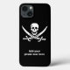 Easily personalize this fun kids modern Jolly Roger pirate skull graphic and crossed swords flag on a black background. You can easily change the background color from a range of over 200 colors .