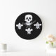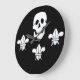 JOLLY ROGER SKULL AND THREE LILIES FLAG LARGE CLOCK