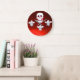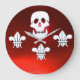 JOLLY ROGER SKULL AND THREE LILIES FLAG, Red Ruby Large Clock