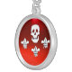 JOLLY ROGER SKULL AND THREE LILIES FLAG ,Red Silver Plated Necklace