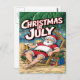 A festive cartoon Santa Claus is seated in a chair, holding a beer in his hand, and smiling contently.