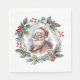 Jolly Smiling Santa Watercolor Christmas Wreath Napkins