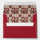 Smiling, jolly snowmen, flowers, and snowflakes on a tan and red squares against a tan background create a cute envelope interior with a rustic, country look. The exterior is dark red. Very cute, and perfect for all your holiday cards.