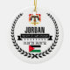 Lightweight, smooth, pure white ornament with nice sheen. Perfect size to be seen from across the room ... and to attract closer inspection! Price was great for ordering enough for the whole family! Clear, bold black design just as requested. Matches the order exactly. Just so nice!