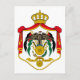 The emblem is comprised of the Royal Hashemite Crown, the Sash, two Flags representing the flag of the Great Arab Revolt, the Eagle symbolizing power, fortitude and loftiness, the Globe, Arab Weaponry, Gold Wheat Ears & Palm Frond, Al Nahda First Order Medal and the Yellow Ribbon.