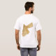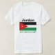 An editable title and slogan accompanies the white star in red triangle next to black, white and green bands of the Jordanian flag on the front of this t-shirt. The back displays a detailed map of Jordan.