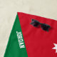 Jordan Flag Splendid Patriotic Beach Towel with the Jordan flag printed all over the towel. National flag colors are complemented with the text "Jordan" on the bottom. Text is fully customizable using "Customize it!" feature. Feel free to change it, remove it or add your own. This charming design is the stunning gift and the great partner for the sunny day on the beach. © CountriesOfTheWorld