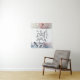 Tapestry with inspirational quote scripture depicts an earth tone watercolor floral with pink and grey flowers and foliage. It features a portion of a powerful Bible Verse taken from Joshua 1 9, "Be strong, be brave, be fearless. You are never alone."