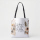Tote bag with inspirational quote scripture depicts an earth tone watercolor floral with pink and grey flowers and foliage. It features a portion of a powerful Bible Verse taken from Joshua 1 9, "Be strong, be brave, be fearless. You are never alone."