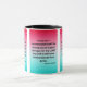 This mug features the "Joshua 1:9" KJV bible scripture in a bold print with black letters plus bible citation with pink & blue background from the King James version. The rim & handle are glazed in matching colors available in 11-ounce or 15-ounce sizes microwave and dishwasher safe ceramic construction.