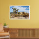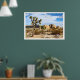 Photograph of Joshua trees, rocks, and sand against a blue sky in Joshua Tree National Park. Customizable/removable text, "Joshua Tree" printed in right lower corner.
