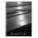 Spiral bound notebook "Journal of Light" features black & white photo, sunset reflection on the shoreline, taken at Huntington Beach CA