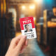 Personalize these vertical press pass badges with an employee photo and name, along with three lines of additional custom text for title or role, media outlet, and valid through date. PRESS appears at the top in bold white lettering. Customize with a QR code on the front. Additional custom text field located on the back for return information or other details.