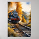 "Capture the scenic marvel with our watercolor masterpiece. A black train winds through mountain tracks, surrounded by lush trees and serene nature. Immerse yourself in the journey's beauty, where the train's movement harmonizes with the tranquil landscape."