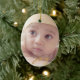 Joy 2 Photo Gold Hand Lettered Script Christmas Ceramic Ornament