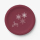 Joy and Three Snowflakes Minimal Red and White Paper Plates