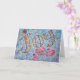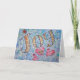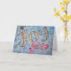 The golden yellow word "Joy" sparkles outlined in silver glitter. Below "Joy" are three pink hearts with a purple outline. The background contains soft blue, green, and lavendar tones. The painting was rendered in watercolor. Glass glitter was sprinkled on top to add to the happy feeling of joy from the inspirational word painting. The watercolor painting has a textural contrast and sparkle from a light layer of glitter. These images are designed so as to provide reflection and meditation on a single word. The idea is to think about the painting and it will help you have a positive attitude associated with that word which will be emotionally healing to a person. You can also combine them together to make your own word series for meditation/ contemplation. Personalize this card with your own text and images using the "Customize" button.