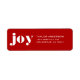 Add a festive accent to your holiday envelopes with these customizable Christmas address labels. They feature the word "JOY" in bold red typography. Personalize by adding your details. These custom holiday address labels are perfect for your Christmas cards and invitations. Matching items are available.