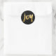 These stickers feature the word joy in a faux gold bold brush script on a black background. Seal your envelopes or add to packages for festive flair.