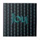 The Chinese symbol for happiness or joy pattern with additional "Joy" text in center on front only. Shades of aqua on black background.