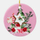JOY Christmas Tree Flowers Candy Cane Ceramic Ornament