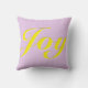 A beautiful customizable throw pillow emblazoned with the word "Joy". Perfect for holiday decorating, or just to add a pop of color and joy to