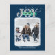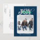 JOY Festive Blue Modern Script Christmas Photo Holiday Postcard