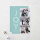 JOY Foliage Lettering Light Blue Photo Collage Holiday Card