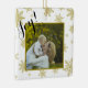 This festive Christmas ornament is perfect as a family memento or holiday gift. It features a gold photo frame surrounded by a white background with gold snowflakes. The caption reads "Joy!" There is space on the back for a short message or greeting, as well as your name(s) and the year.