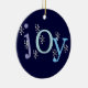 Text with snowflakes reads "Joy" on a holiday ornament that's simple and elegant!
