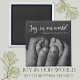 Celebrate the newest bundle of joy this holiday season with this baby's first Christmas magnet! With its classic black and white color scheme and modern design, this photo magnet will be a cherished keepsake for years to come. Perfect for new parents, grandparents, aunts and uncles, and anyone as obsessed with your little one as you are!