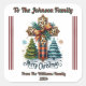Delightful square stickers adorn beautifully wrapped gifts for Christmas, featuring a vibrant design of trees, ornaments, and cheerful typography.