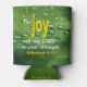 Modern stylish CHRISTIAN SCRIPTURE CAN COOLER showing a greenery background image with the verse based on Nehemiah 8:10, which reads THE JOY OF THE LORD IS YOUR STRENGTH. Underneath there is optional placeholder text which is CUSTOMIZABLE, so you can either personalize it by adding your name and/or message, or simply delete. This would make a great favor giveaway at special Church meetings, conferences or conventions, ministry gifts, stocking fillers at Christmas, for Birthdays and to encourage someone waiting for a breakthrough. Matching items available.